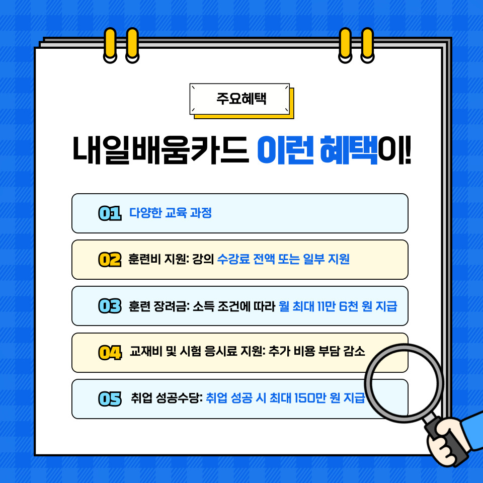내일배움카드는 특히 취업 준비생에게 다음과 같은 혜택을 제공합니다:
